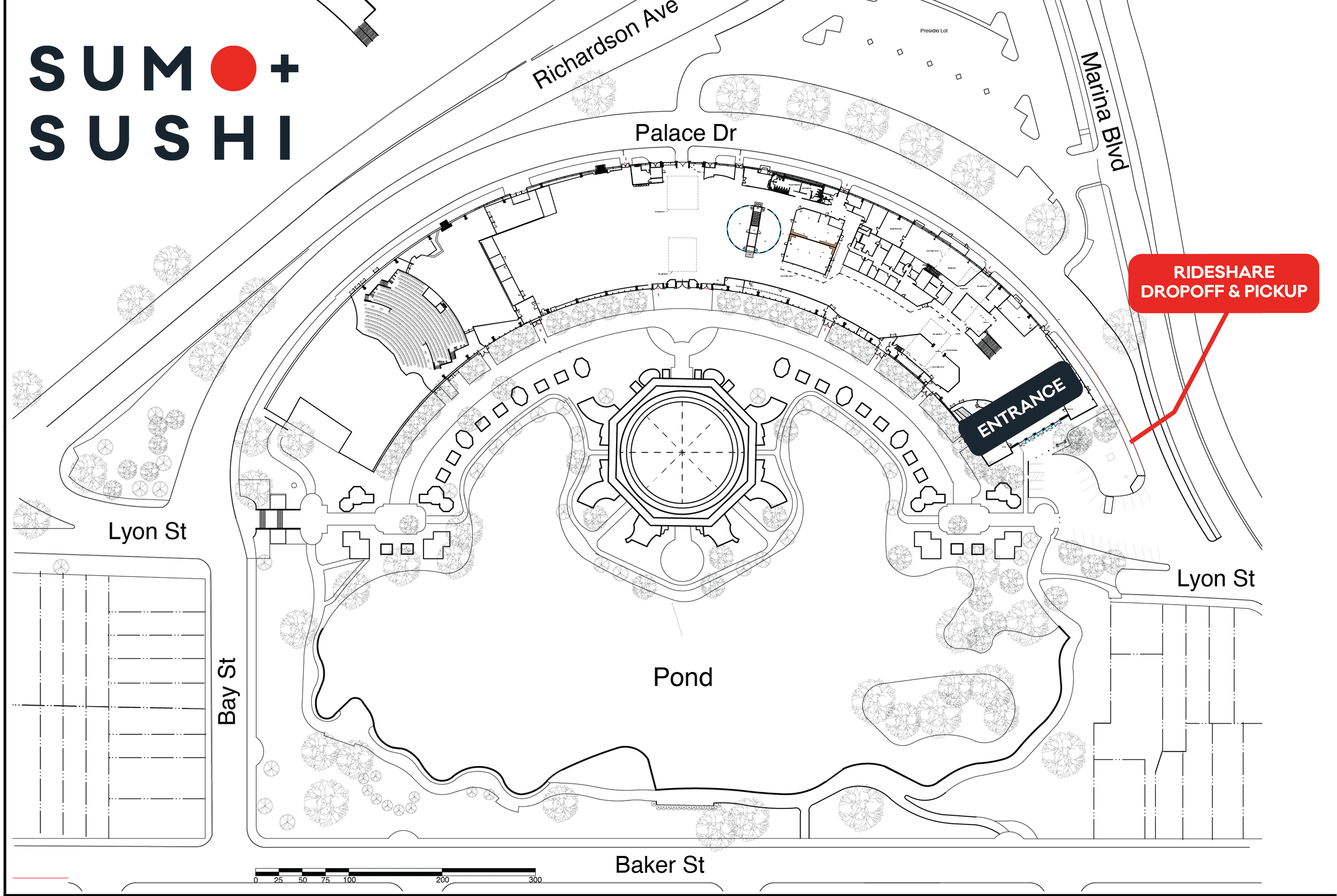 We recommend using Google Maps for accurate directions.You will enter the venue through the glass doors on the North side of the building at the roundabout at the end of Palace Drive. [See image below for more information] Please look for the flag and door that is labeled for your ticket type. You will enter the queue from around the corner on Palace Drive.